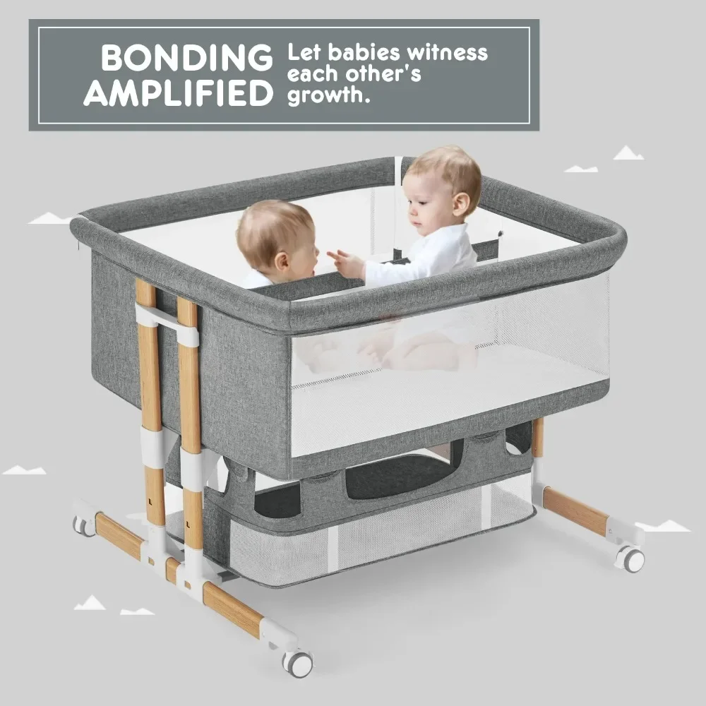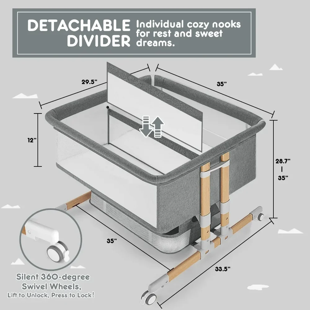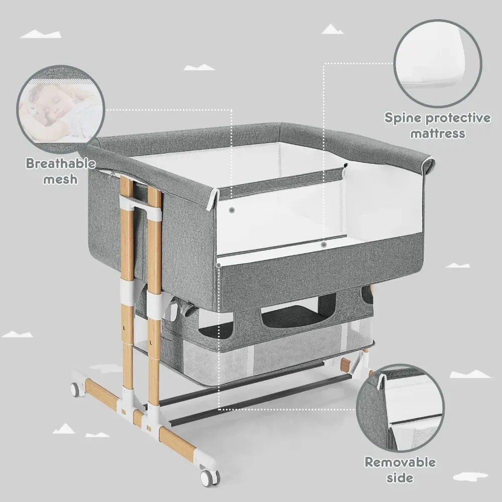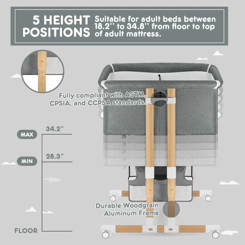 Crib features: Bed-Sharing, Clear View, Folding, Portable